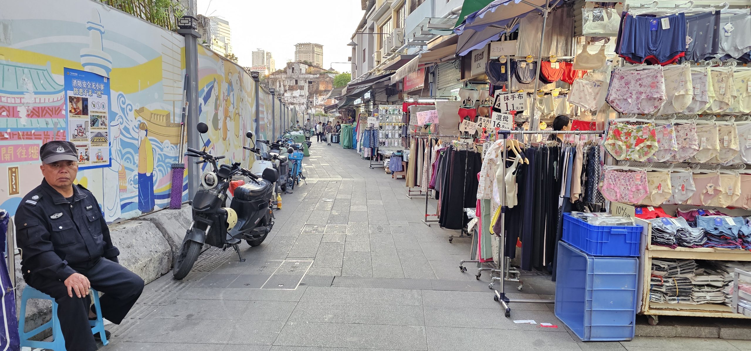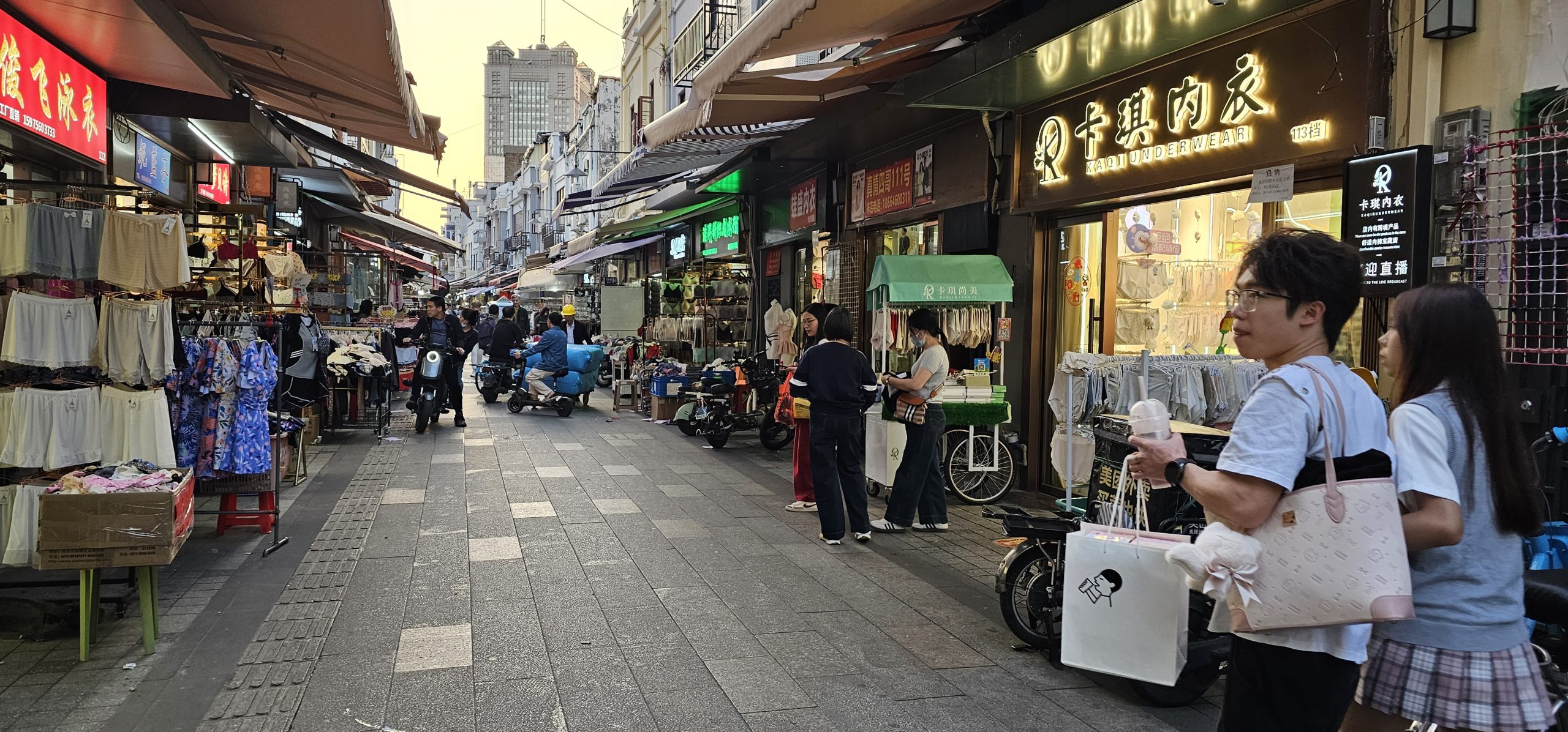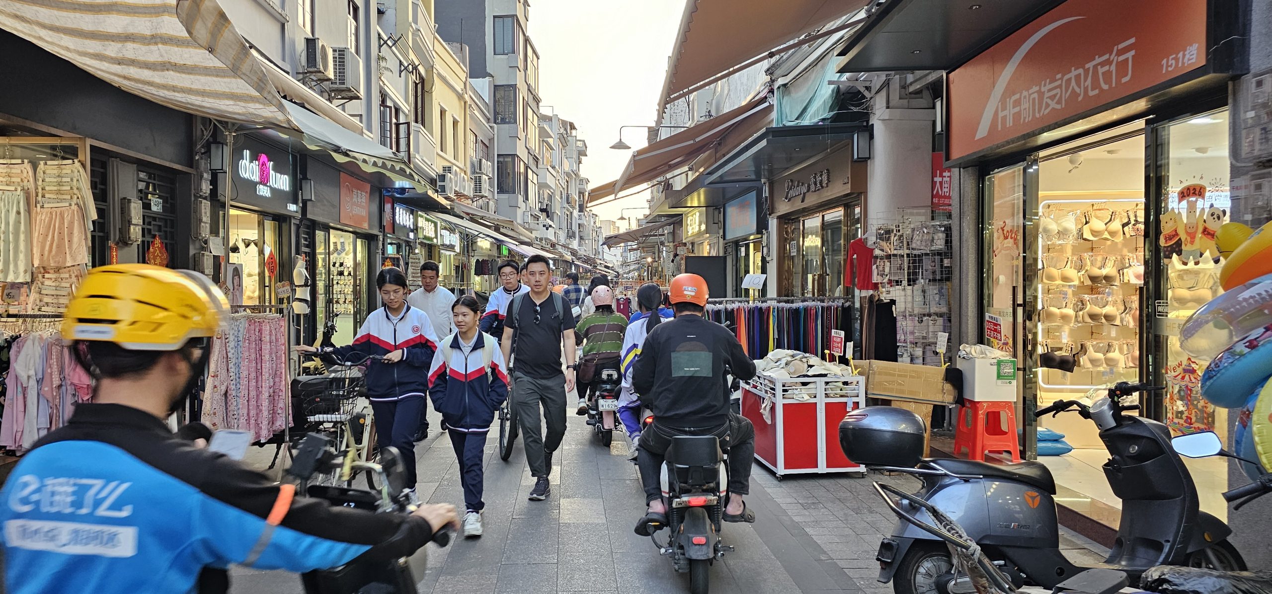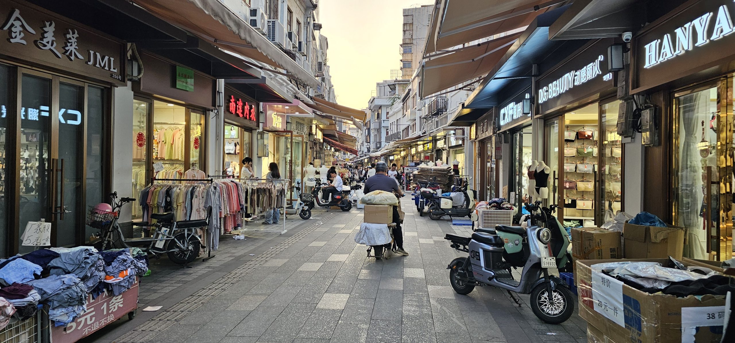 The path itself was long and winding and had nothing but various clothing stores all the way through. There were a few tourists walking through, but it actually seemed to be largely locals, school children, people on carts bringing goods to the shops, and an endless convoy of Meituan motorcycle drivers trying to bring a meal somewhere to make their daily quota. I didn’t buy anything, but I was close to just picking up various things in places because they were so cheap. Nothing jumped out at me as I walked by, but I could probably have found some nice stuff if I had taken the time to rifle through the stores.