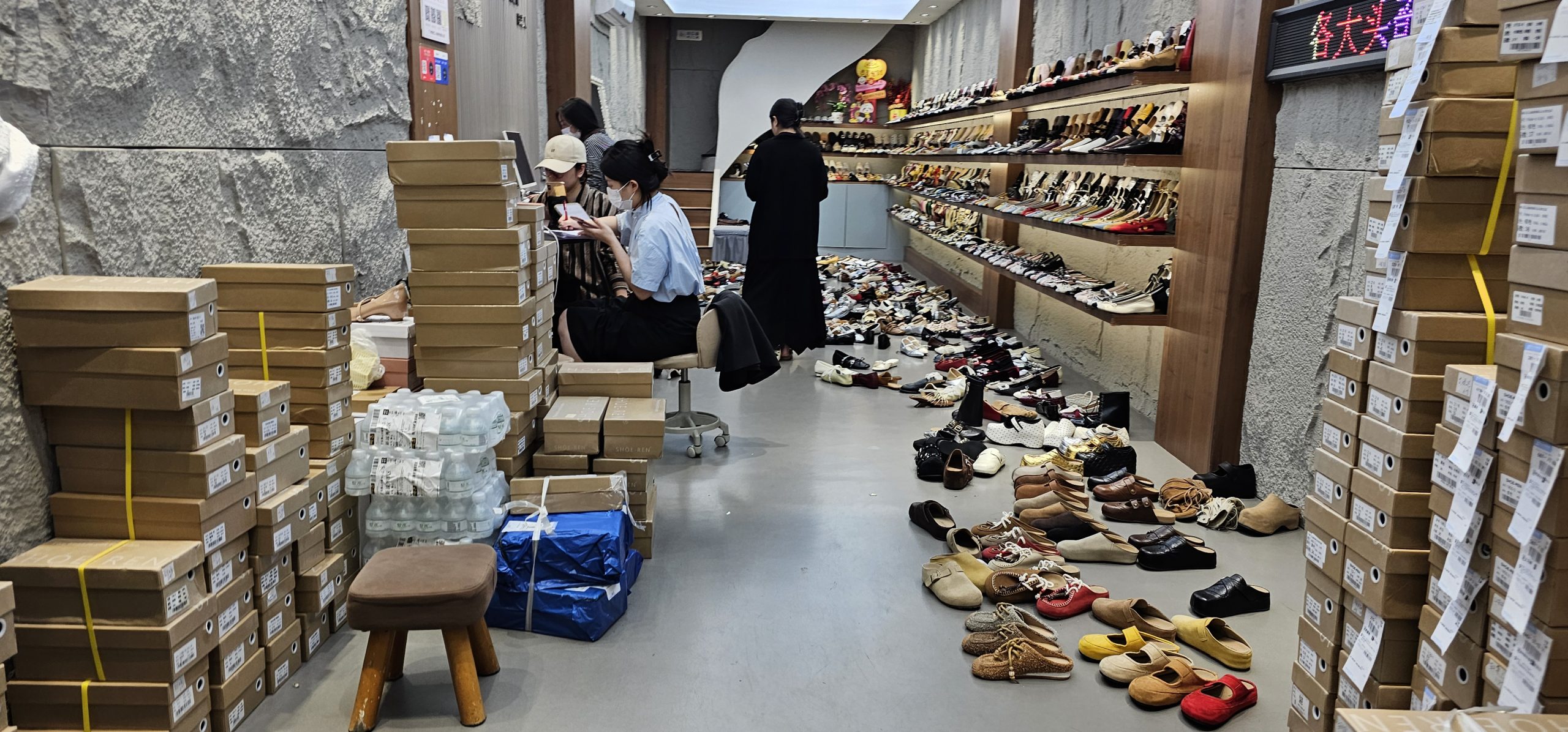 Gaodi Street eventually crossed a road called Guangzhou Qiyi Road and turned into a different sort of street altogether — instead of endless rows of shops selling clothes, instead here they were shoe shops, dozens and dozens of them. By and large, they looked to be fairly upscale as well, at least appearance wise. These were clean, if small and independent, stores with nice-looking shoes.