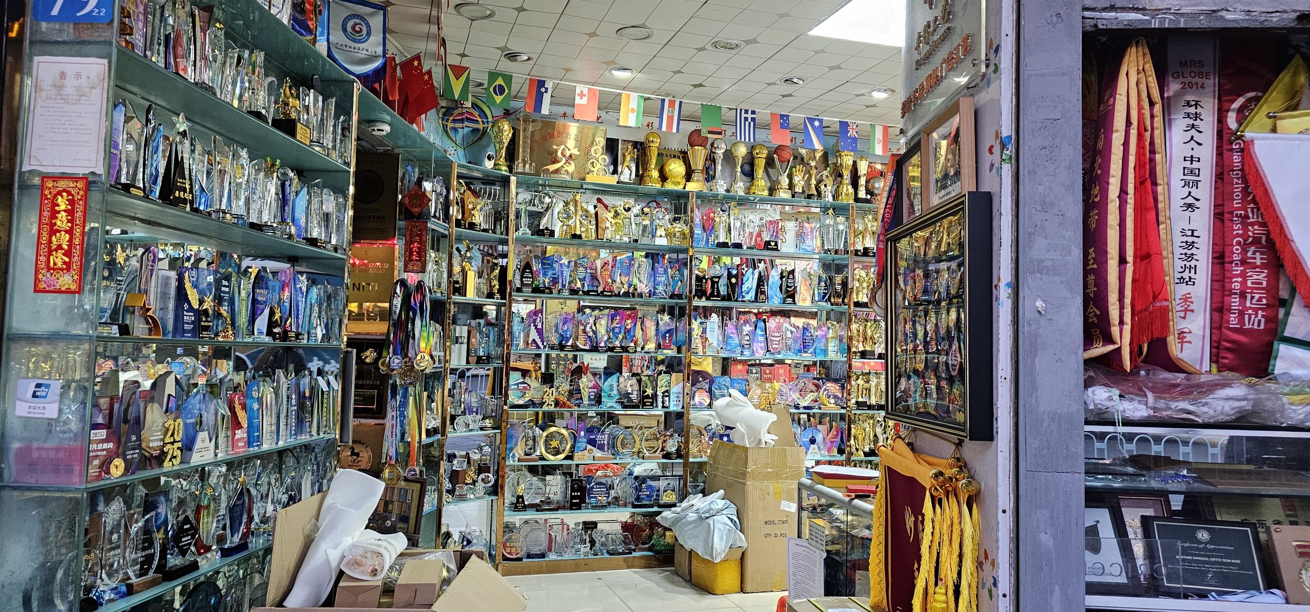 I followed the street north and a bit east, and at some point passed a whole row of shops selling trophies and medals. That seemed to me to be a really specific niche to try to have a number of shops in an area all specialize in.