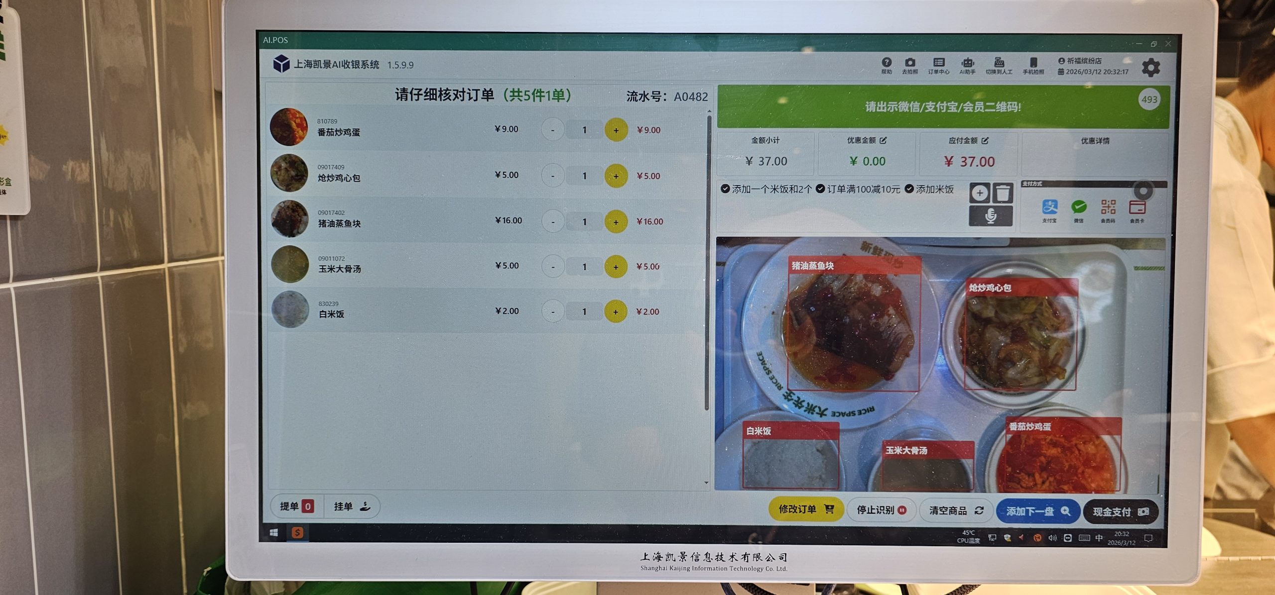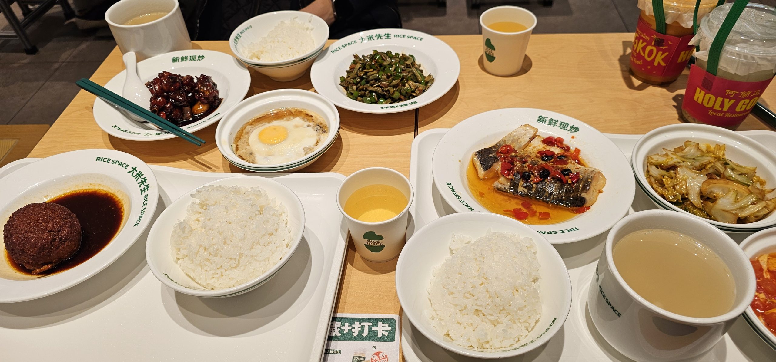 After a bit of chatting, we went out for dinner, visiting one of the other stores down below that Kel had not been to yet, but that we had discussed going to earlier in the week. This store was called Rice Space, or 大米先生 (Mr. Big Rice), and was a store where they made a bunch of different side dishes and you picked whatever you wanted to eat with your rice. Then you scanned it under a repurposed book scanner and an AI detected what was in your dish and charged you for it. It was interesting to see in action.